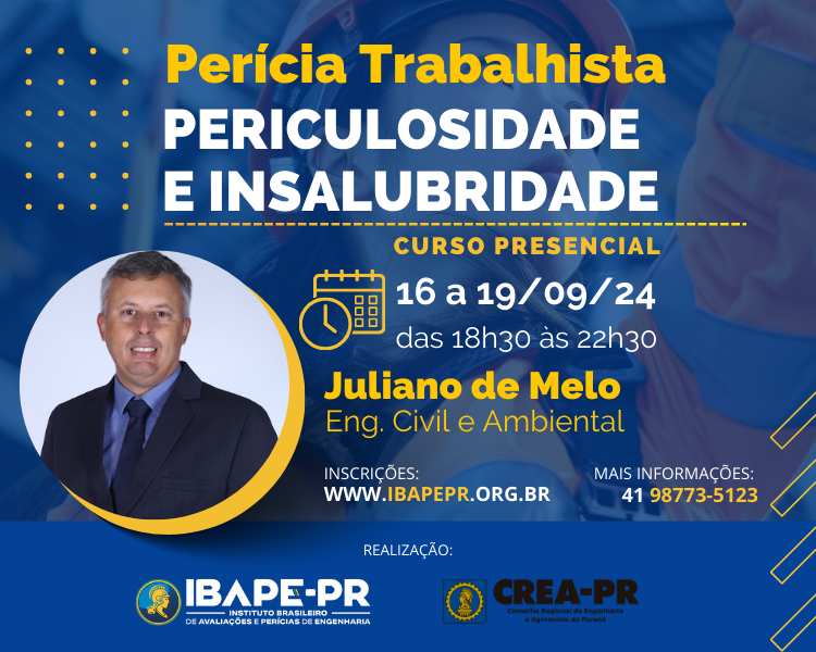 Atualização de profissionais nos temas de periculosidade e Insalubridade para atuação em processo Judicial e extrajudicial, como Peritos e Assistentes Técnicos. Manter a qualificação dos profissionais que atuam em processos judiciais, evitando laudos incompletos ou mal executados que venham afetar a decisão judicial e um parecer confiável baseado em um laudo executado por engenheiro.