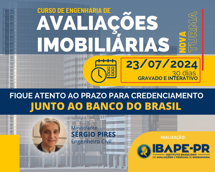 O curso é destinado a engenheiros civis, agrônomos, arquitetos e profissionais das áreas de engenharia, arquitetura e agronomia, que desejarem atuar nas áreas de Avaliação de Imóveis para Órgãos Públicos e Privados e Perícias para o Juízo e Escritórios de Advocacia. Para credenciamento na Caixa Econômica Federal e no Banco do Brasil e demais instituições que demandam avaliação de bens.